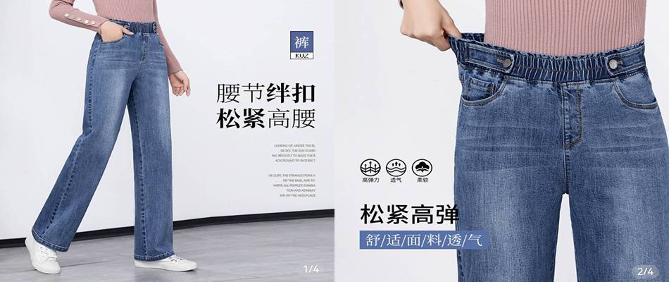 2020春夏新款批发松紧腰高腰牛仔裤女宽松直筒显瘦阔腿长裤