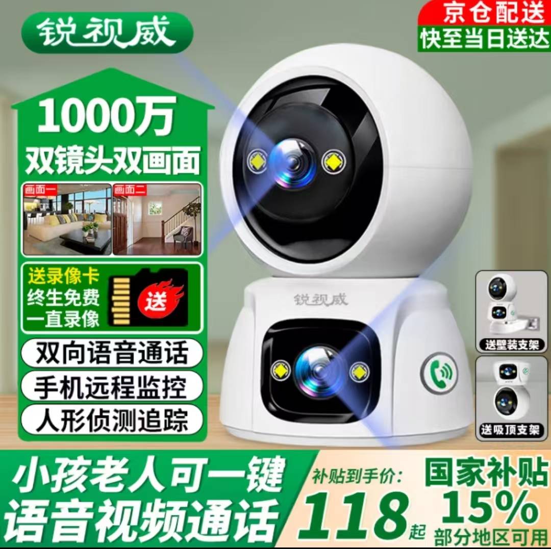 高清室内监控摄像头家用无线wifi网络远程手机监控器360度无死角