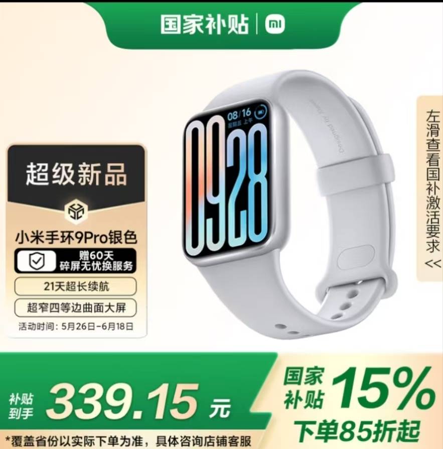 小米(MI)手环9Pro银色 智能手环 高精度运动健康 睡眠呼吸暂停监测 心率血氧监测运动手环