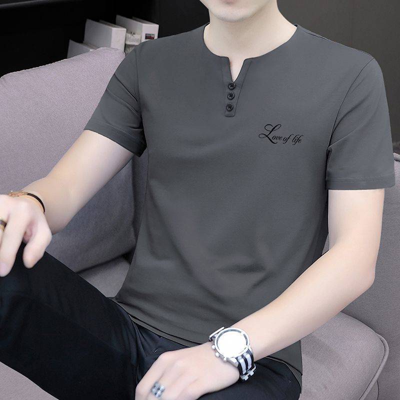夏季男士男款薄款显年轻显气质V领纯棉短袖T恤