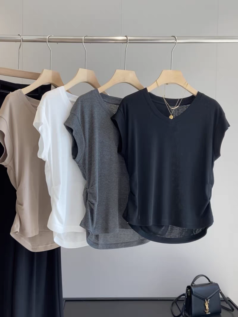 V领纯色基础短袖女T
