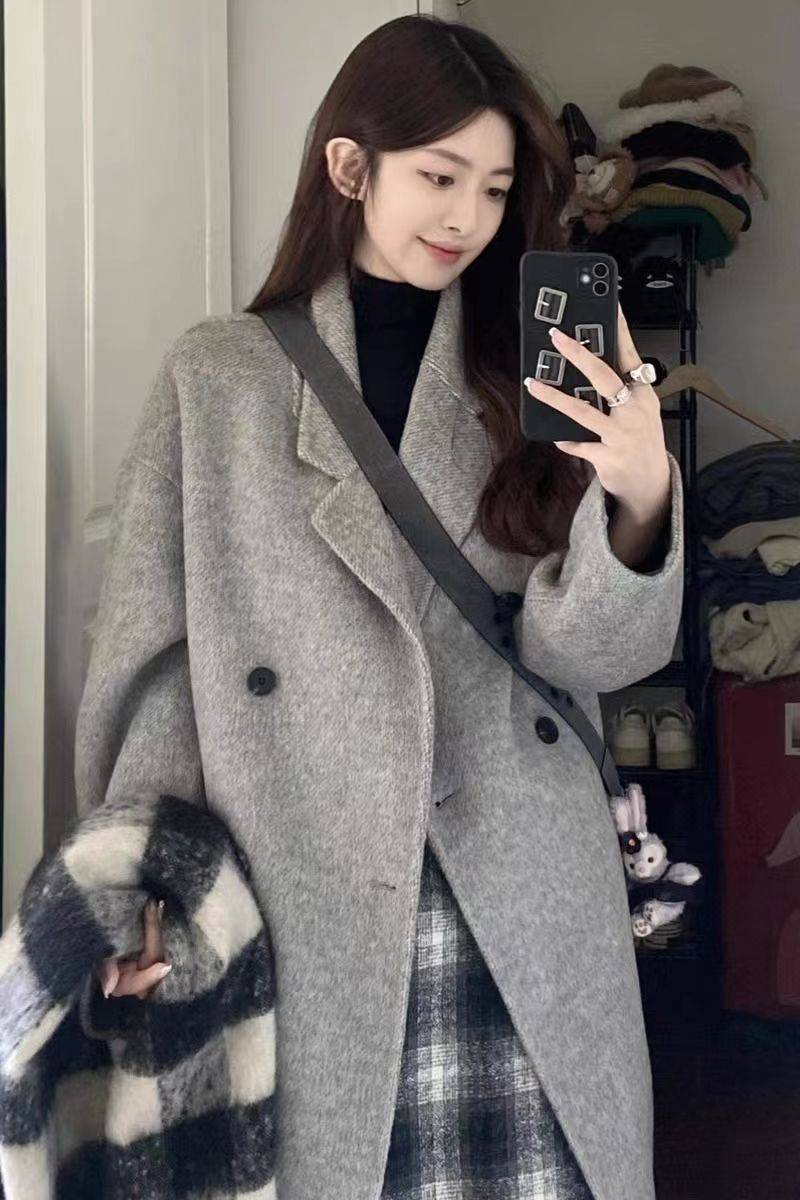 【盛宏】M家经典大衣双面羊绒大衣毛呢外套女水波纹羊绒大衣7202
