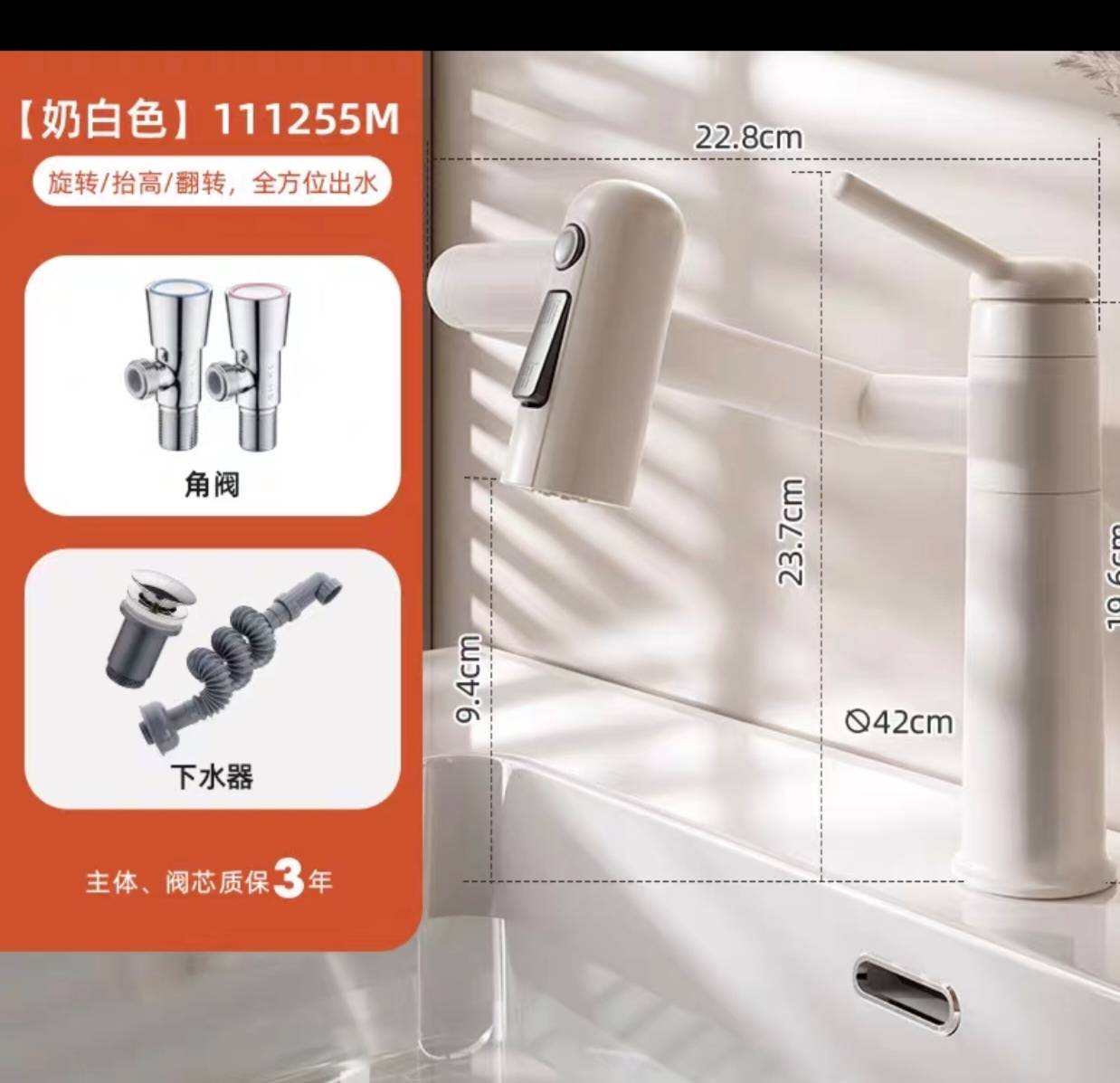 卫生间抽拉龙头奶白色水龙头冷热洗脸盆
