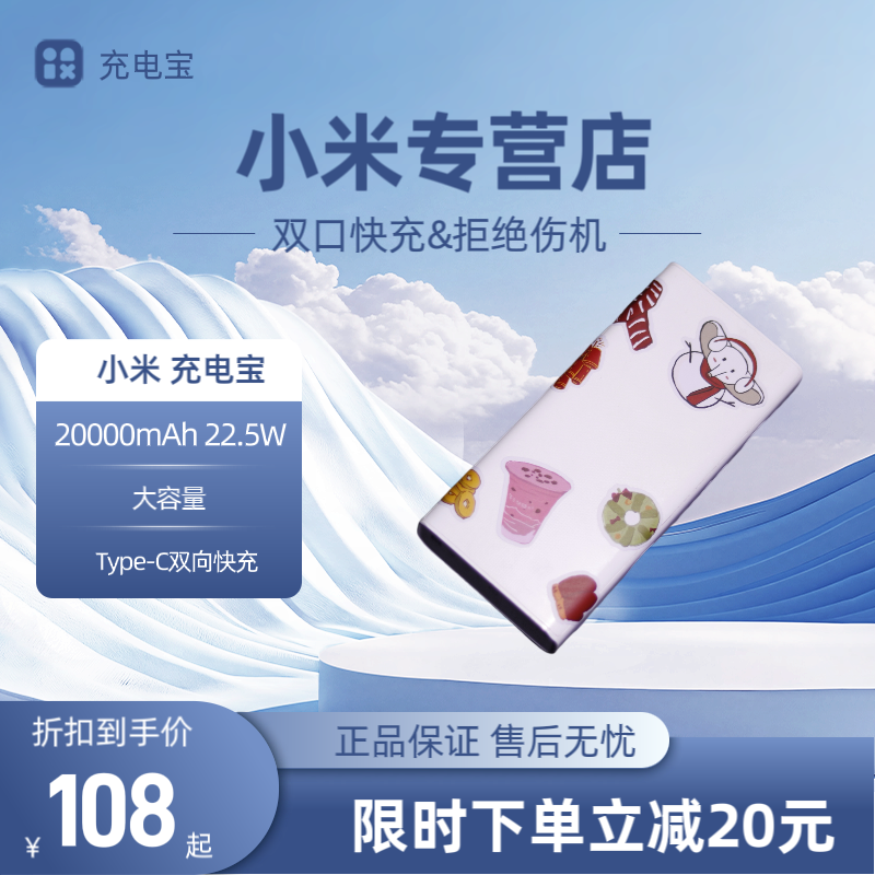 小米 充电宝 20000mAh 22.5W 大容量 Type-C双向快充 移动电源