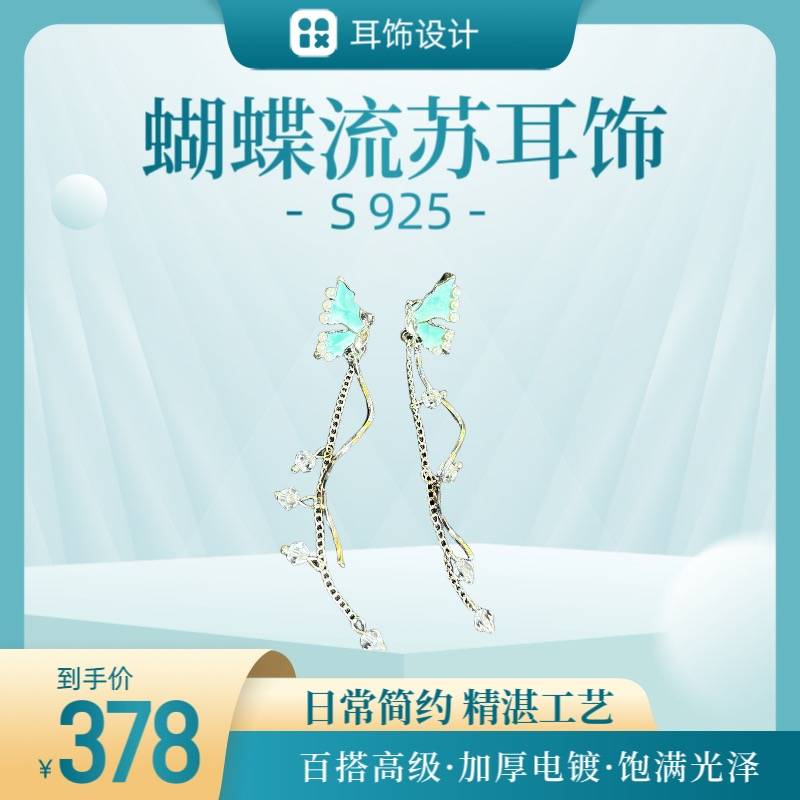 2024新款蝴蝶流苏长款耳饰S925养耳洞防过敏 高级感耳饰