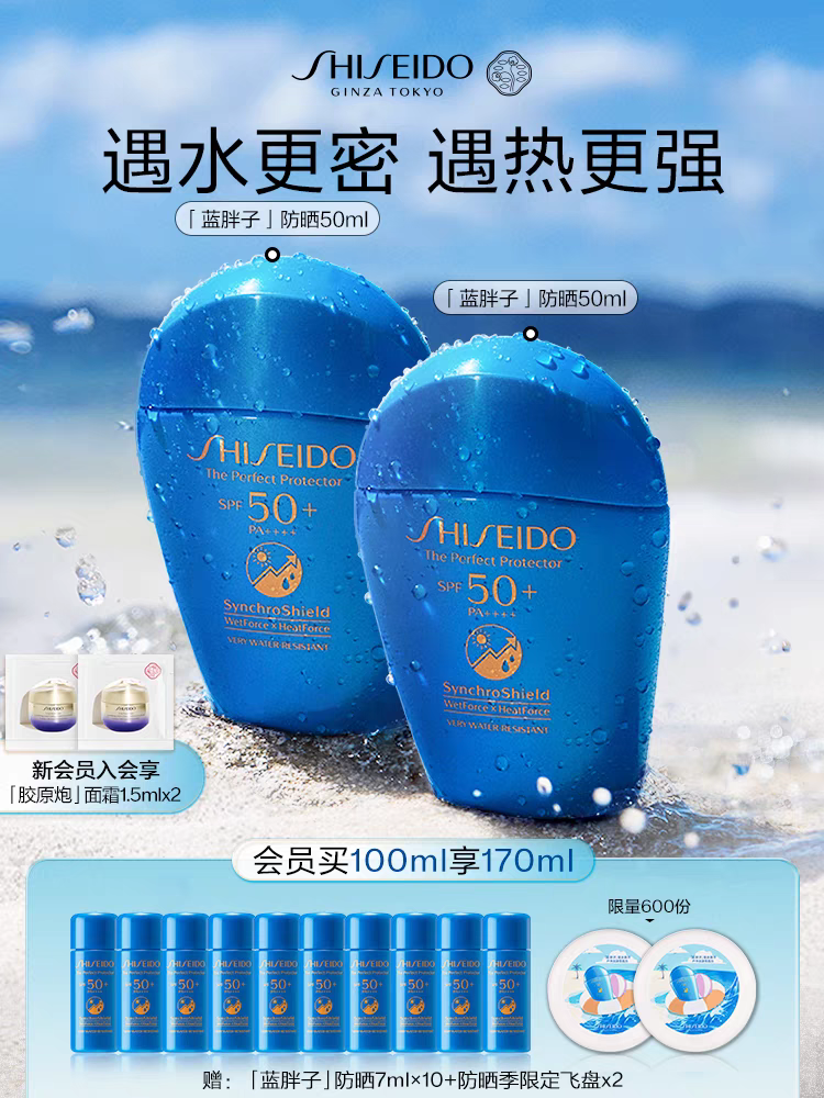 日本代购直邮资生堂新艳阳夏臻效水动力防晒乳50ml SPF50+蓝胖子