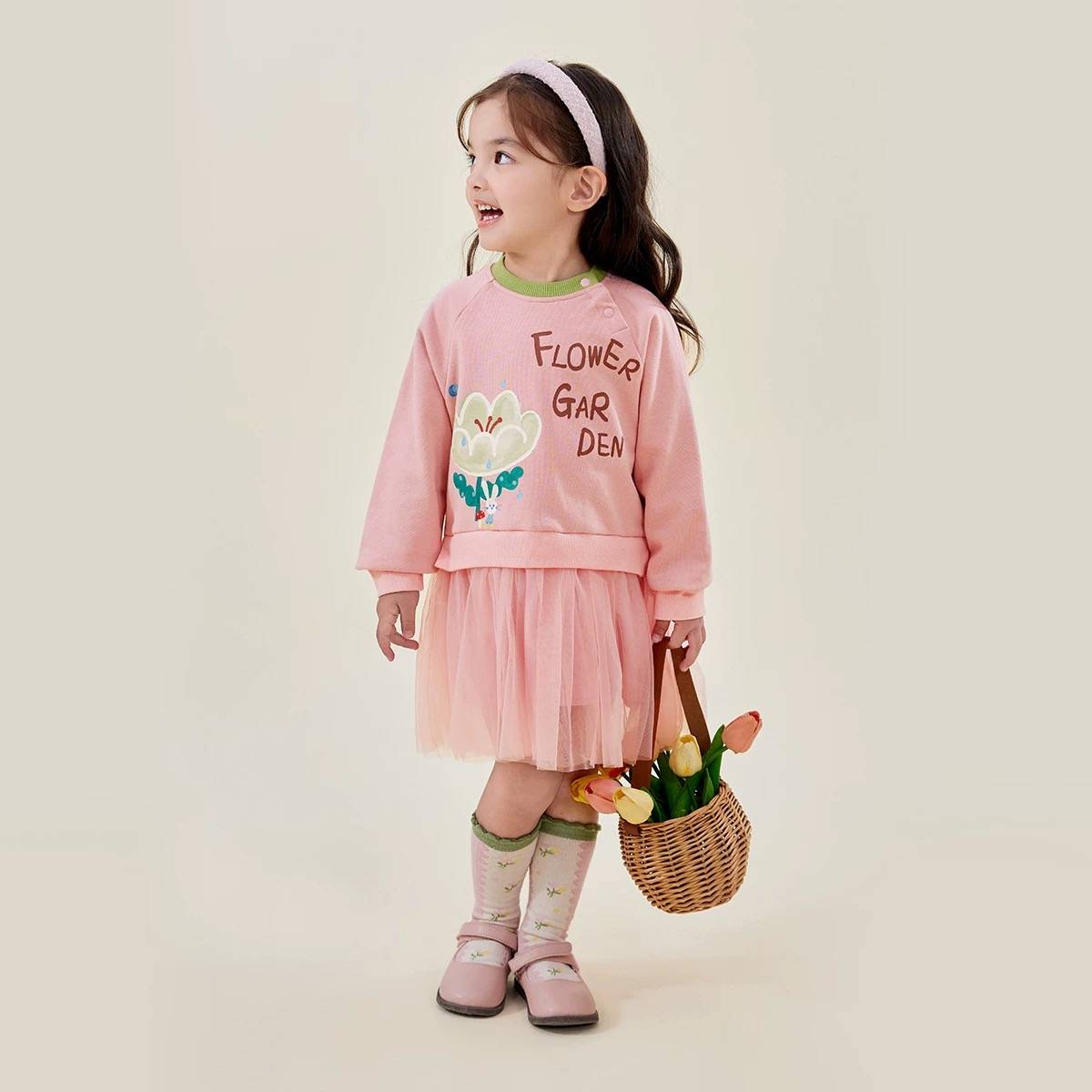 女宝连衣裙春装女童粉色网纱裙宝宝甜美蓬蓬裙子春秋洋气