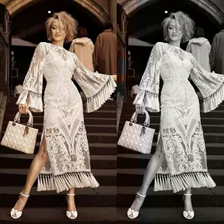 2025跨境春季新款欧美女装刺绣连衣裙白流苏礼服裙亚马逊蕾丝礼服