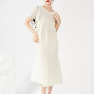 纯色蕾丝裙 2020夏季新款品牌女装镂空百褶裙气质轻熟连衣裙