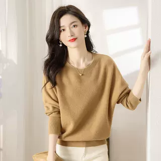秋冬新款圆领纯羊毛毛衫女针织打底百搭宽松显瘦内搭纯色毛衣上衣