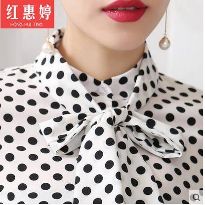 红惠婷春秋款长袖衬衫圆点印花女装蝴蝶节修身女士上衣工作休闲衫