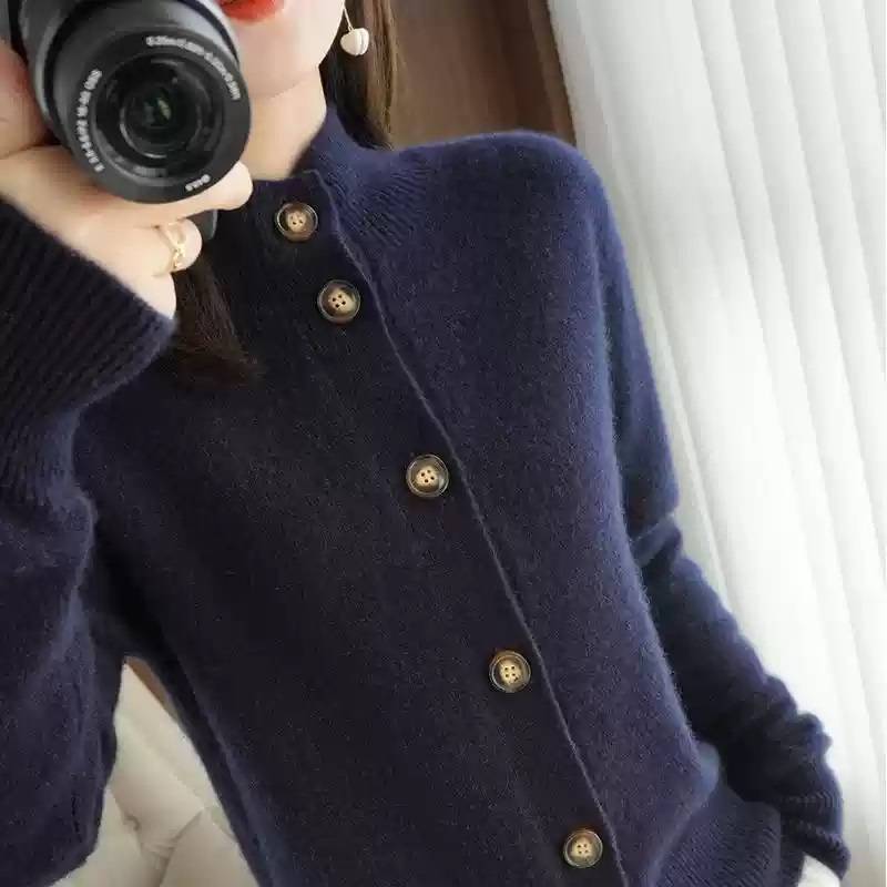 针织开衫2024春秋新款慵懒宽松百搭立领短款女士毛衣外套洋气上衣