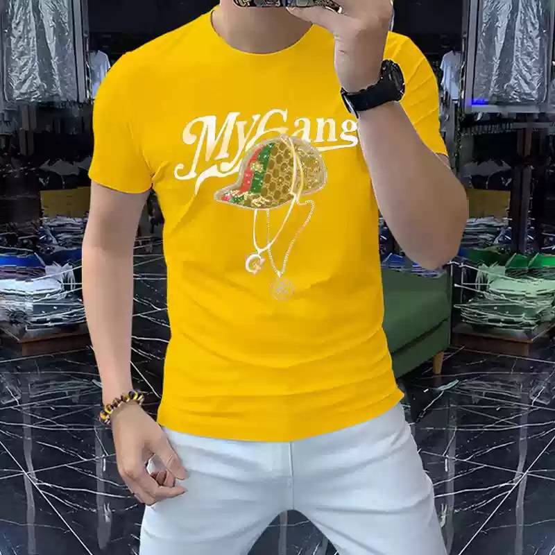欧洲站2024夏季新款圆领烫钻短袖t恤士青年精神小伙大码半袖潮T