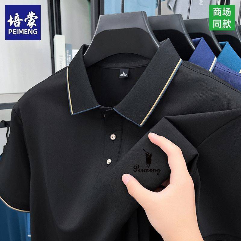 培蒙男士冰丝短袖夏季培蒙男士冰丝短袖夏季商务翻领T恤衫爸爸装高档半袖轻奢POLO务翻领T恤衫爸爸装高档半袖轻奢POLO衫