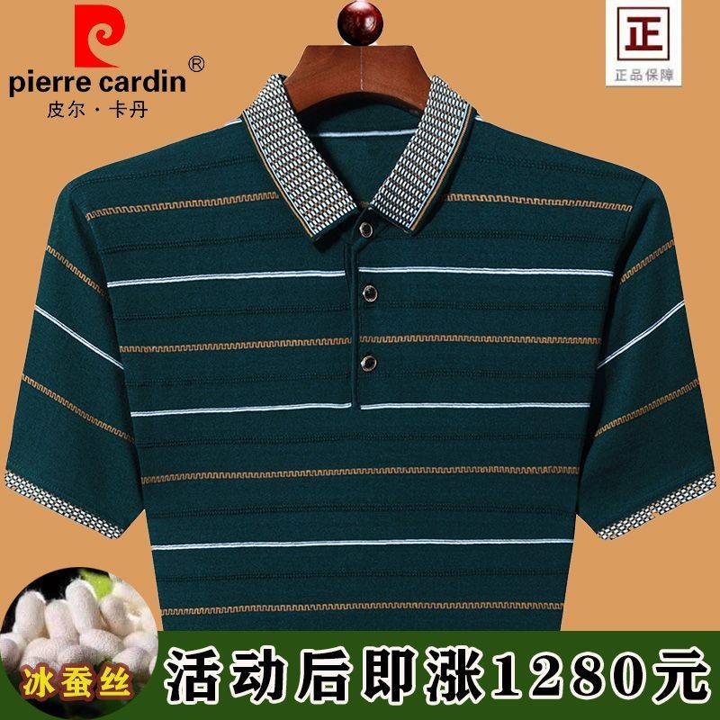 皮尔卡丹男士夏季短袖T恤翻领中年大码半袖冰丝爸爸宽松休闲上衣