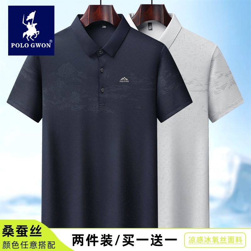 【千里江山图】保罗桑蚕丝短袖t恤男士夏季亲肤冰丝polo衫两件装