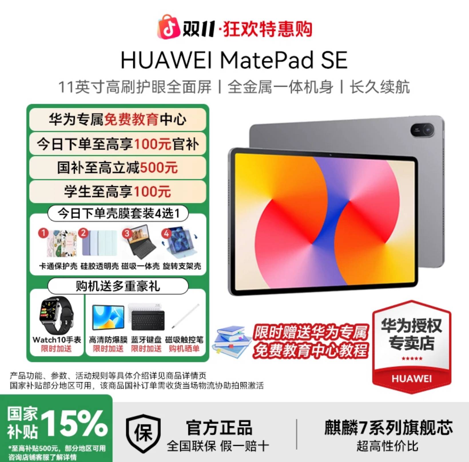 【全国国补 双11】华为MatePadSE 新品学生高性价比学习大屏幕平板