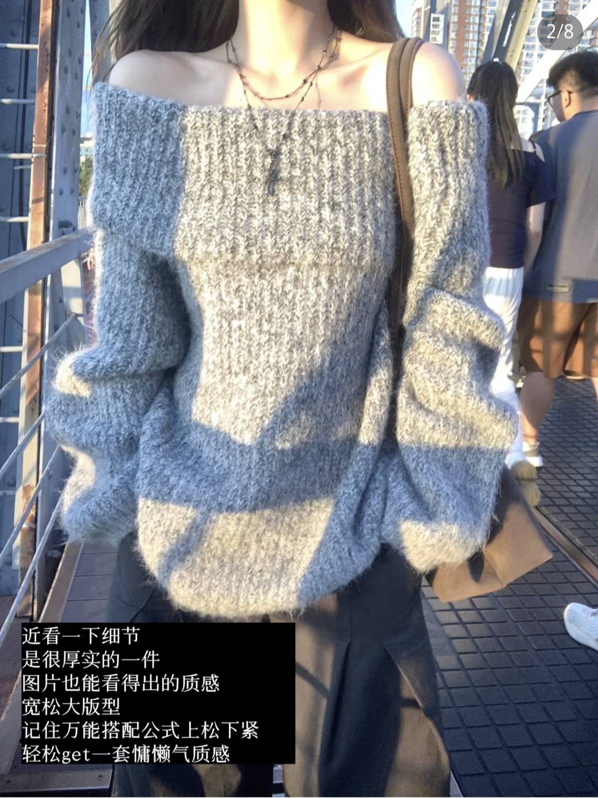 【优雅露肩 | 慵懒浪漫】法式一字领毛衣女2024秋冬新款 宽松显瘦针织衫 软糯套头针织上衣