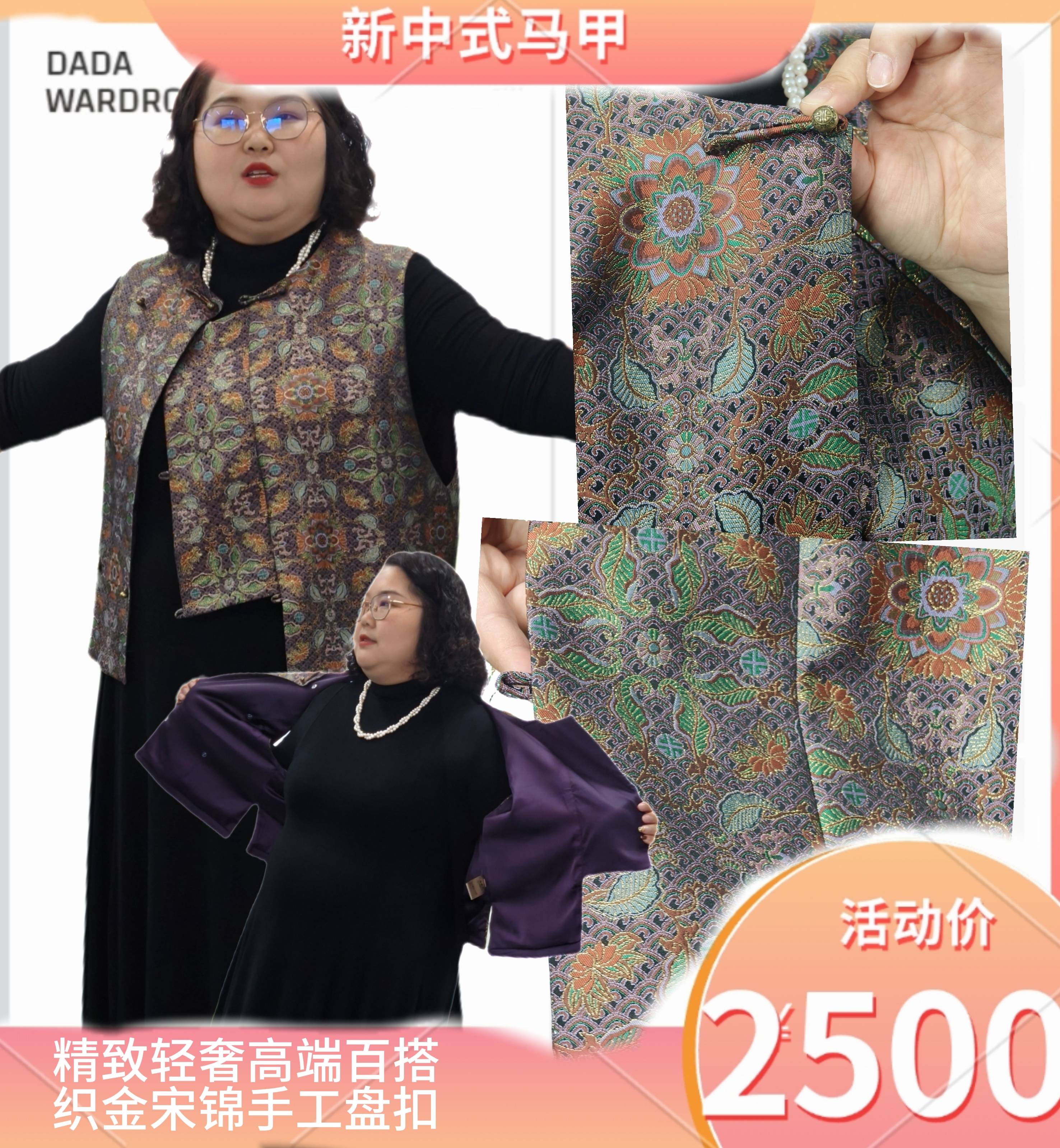 古风国风新中式宋锦织锦大码马甲精致轻奢高端真丝百搭手工盘扣