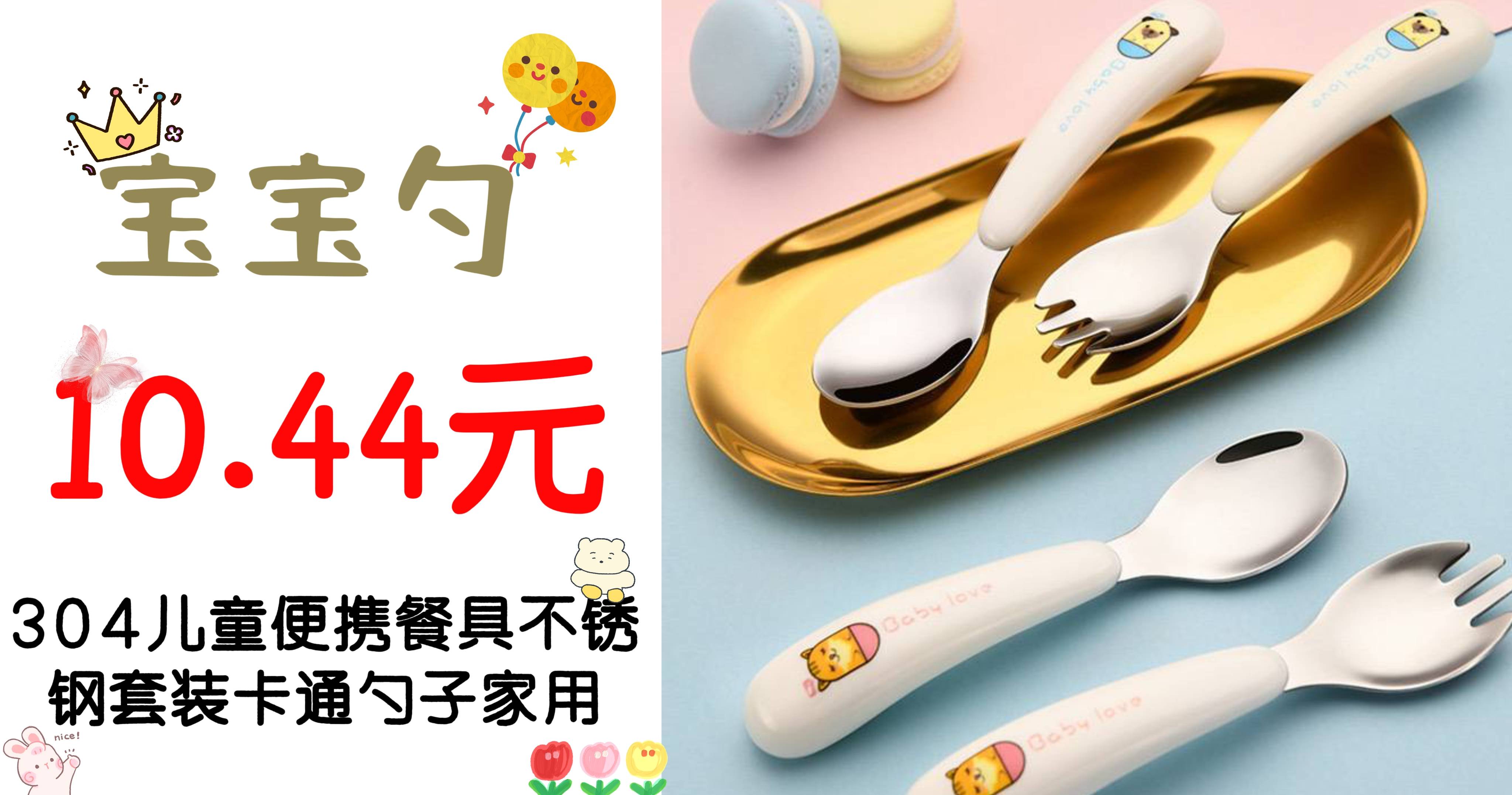 304儿童便携餐具不锈钢套装卡通勺子叉子宝宝学习训练勺家用