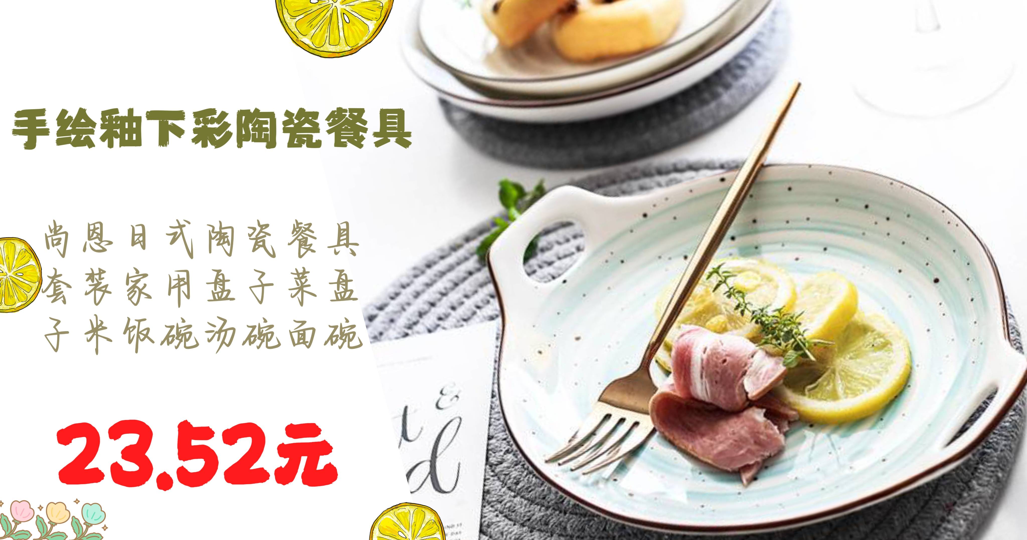 尚恩 日式手绘釉下彩陶瓷餐具套装家用盘子菜盘子米饭碗汤碗面碗