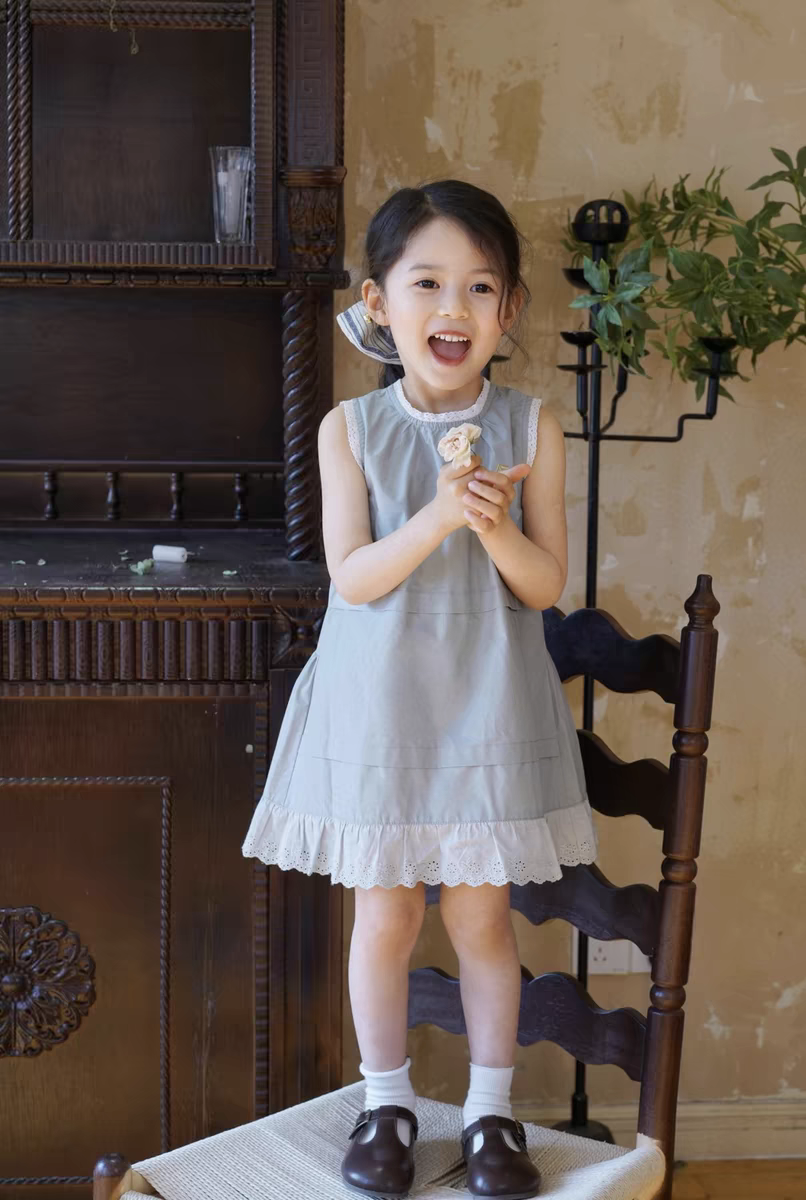 bp樱桃花边背心裙女童法式气质蕾丝连衣裙夏宝宝洋气复古背心裙