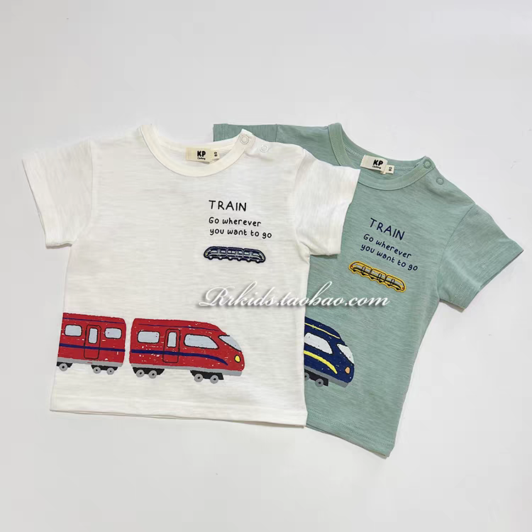 日单贵牌KP儿童男童竹节棉火车图案刺绣印花字母短袖T恤80-130码