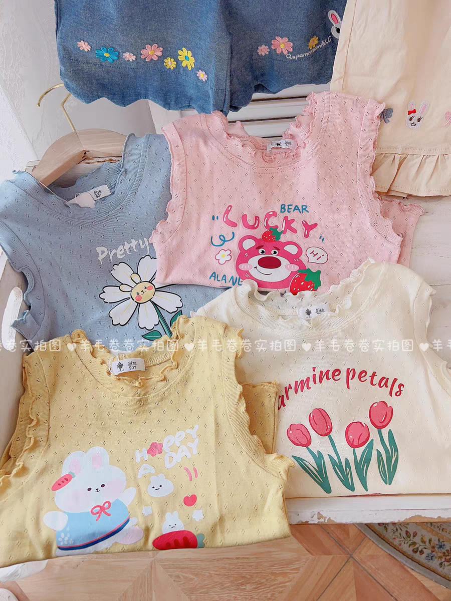 会呼吸的网眼无袖t恤 儿童夏款全棉卡通棉背心吊带女童纯色短袖