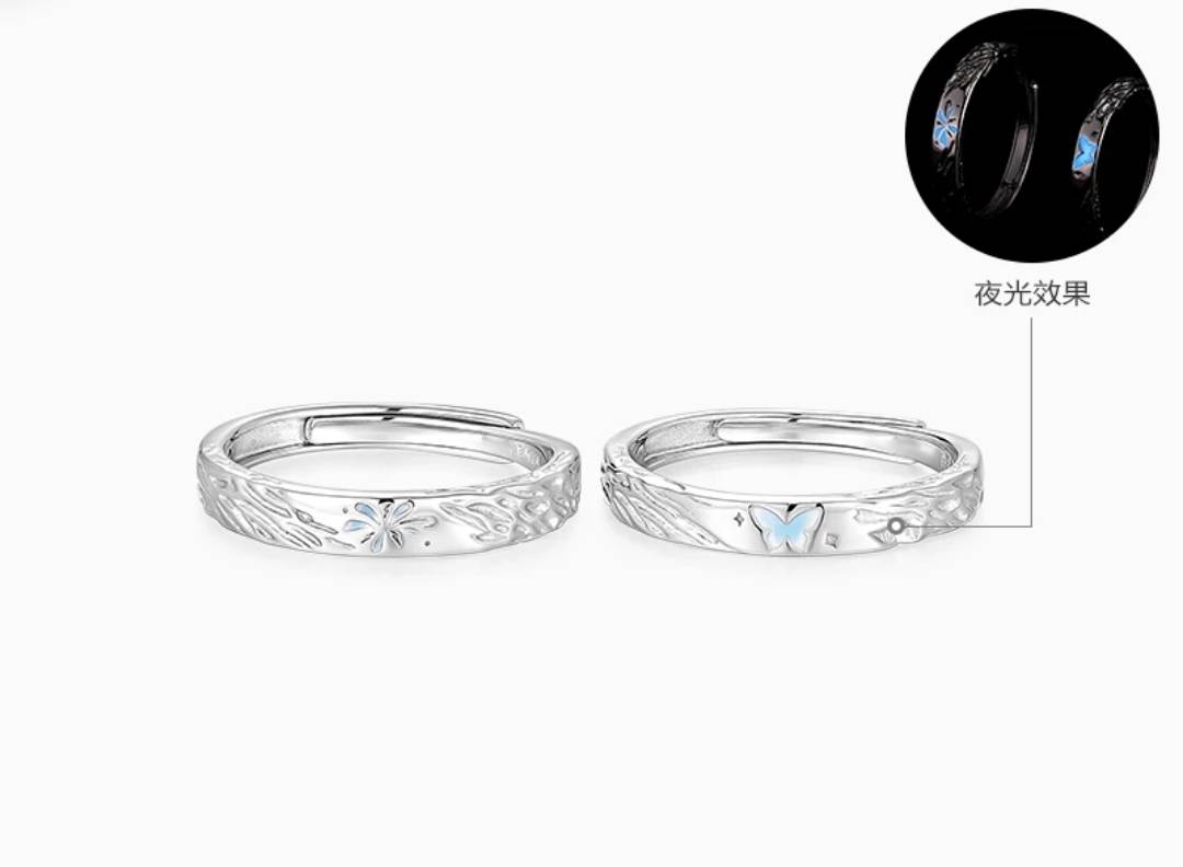 KADER/卡蒂罗 足银戒指 蝶焰之契情侣对戒夜光轻奢时尚小众气质