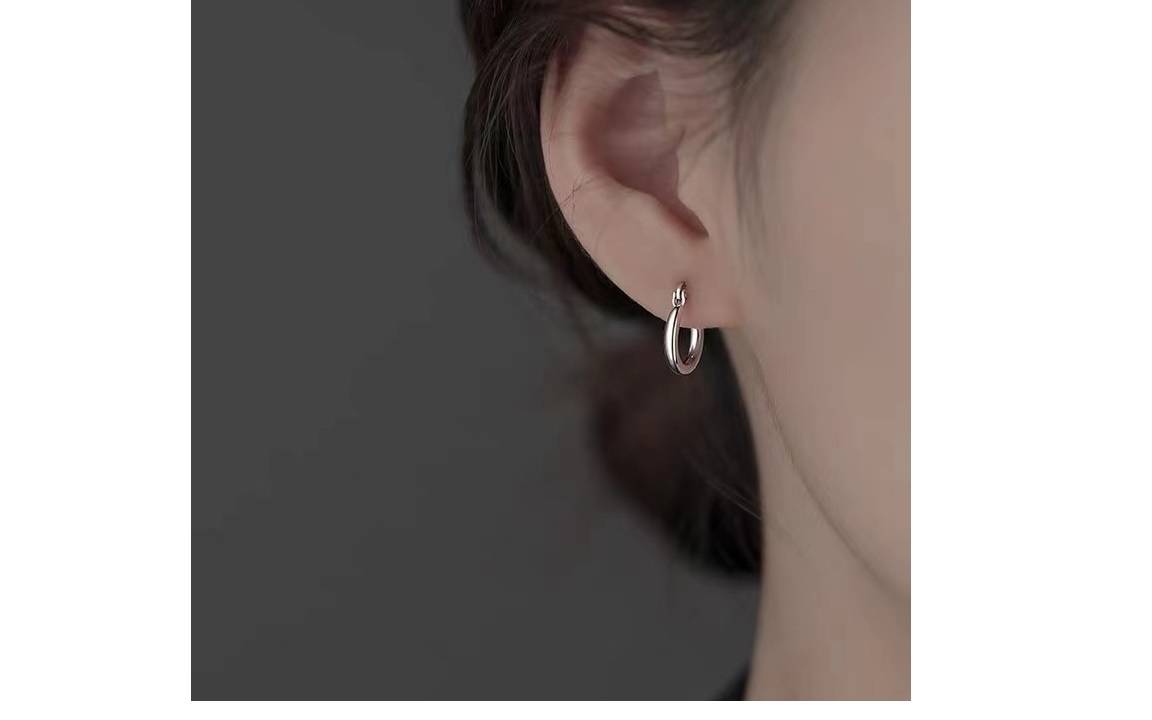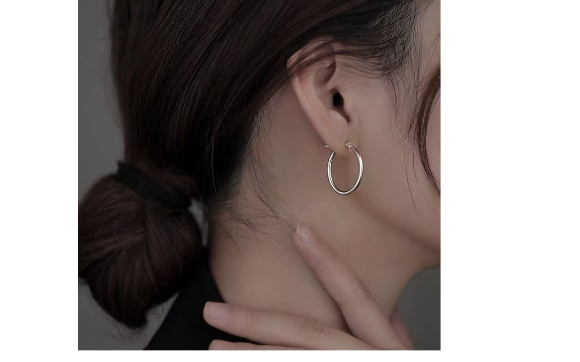 s925纯银素圈耳环女2024年新款轻奢潮时尚高级感百搭小众耳饰品