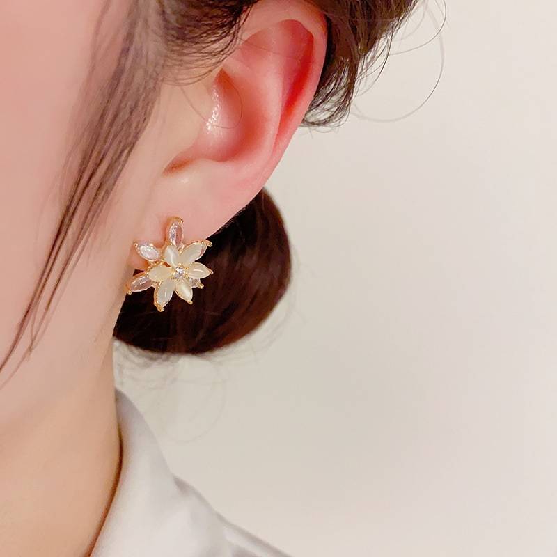 韩式气质网红同款锆石猫眼石耳钉女s925银针高级感小众设计感耳环