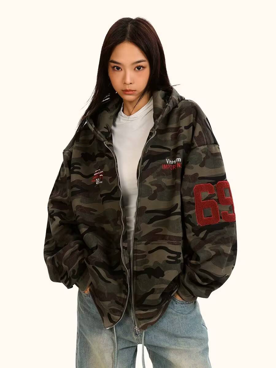 0123Start复古重磅连帽开衫卫衣男女宽松美式春秋外套