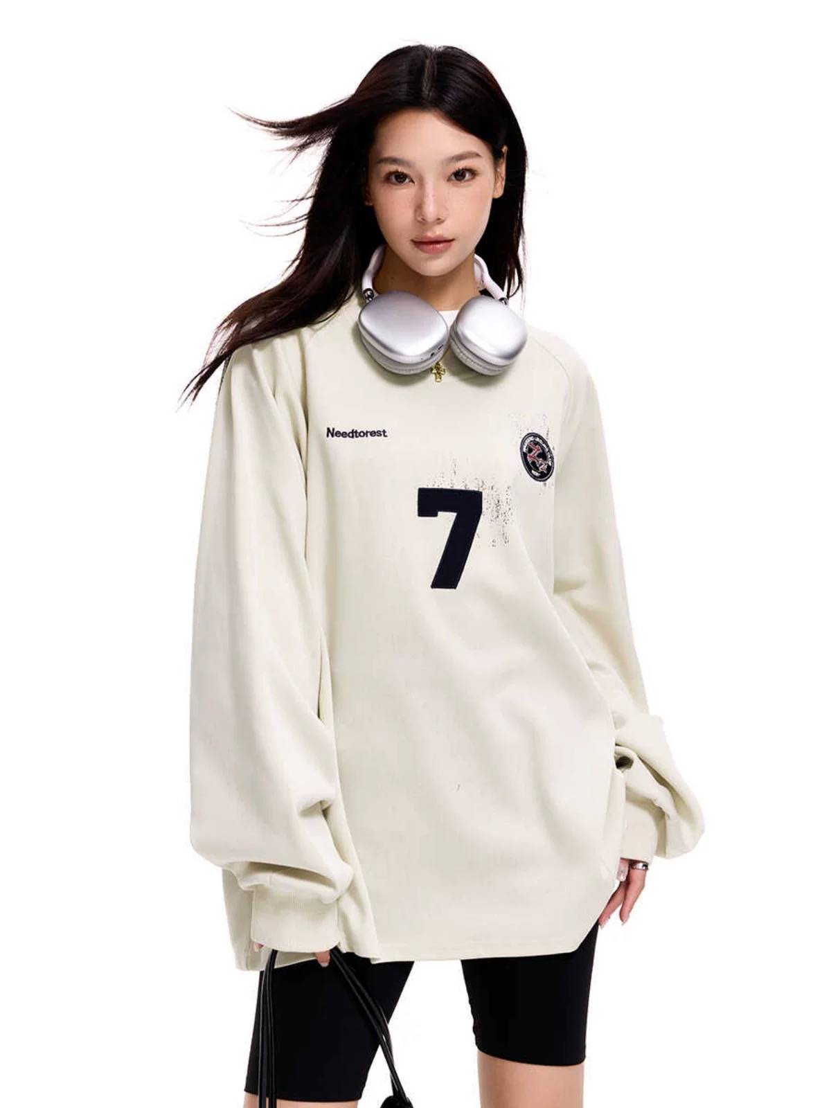 0123Start美式做旧脏染7号圆领卫衣男女复古宽松慵懒风