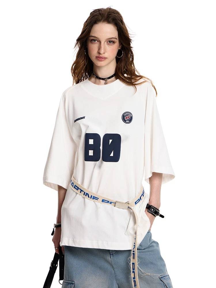 0123Start美式复古运动风短袖T恤男女宽松轮廓情侣上衣
