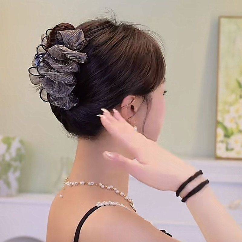 春夏新款网纱褶皱盘发抓夹高级感优雅气质时尚温柔甜美发夹